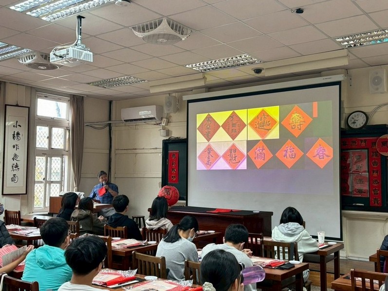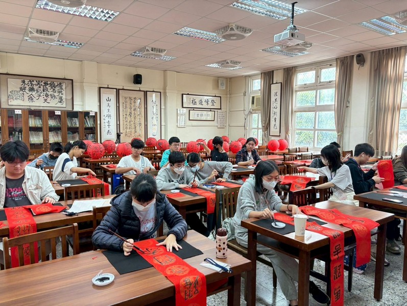 本系今年參加臺中市政府為高中生辦理的114學年第1學期「優遊臺中學」跨校選修課程。以本系特色課程——書法課,作為主要課程安排。課程主題訂為:馬到成功 ‧ 2026馬年創意春聯,以趣味化的方式帶領學員認識書法之美,並實作練習書寫新年春聯,期望引起學員對書法的興趣,落實在日常生活持續習寫書法。