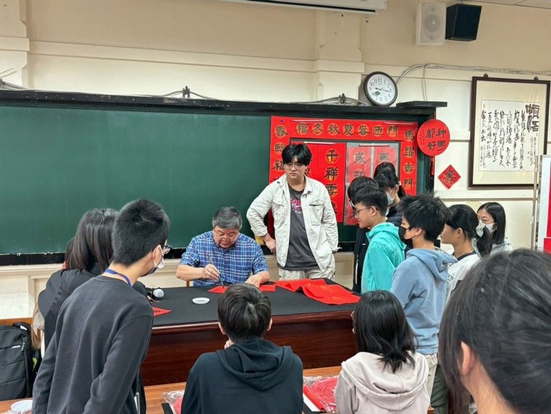 本系今年參加臺中市政府為高中生辦理的113學年第1學期「優遊臺中學」跨校選修課程。以本系特色課程——書法課,作為主要課程安排。課程主題訂為:蛇來運轉~趣味春聯書寫體驗,以趣味化的方式帶領學員認識書法之美,並實作練習書寫新年春聯,期望引起學員對書法的興趣,落實在日常生活持續習寫書法。