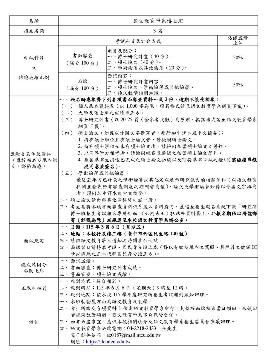 【招生】115學年度語文教育學系博士班開始招生!!!